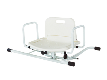 回転式シャワーシート、幅調整可能、移動しやすく安全設計。