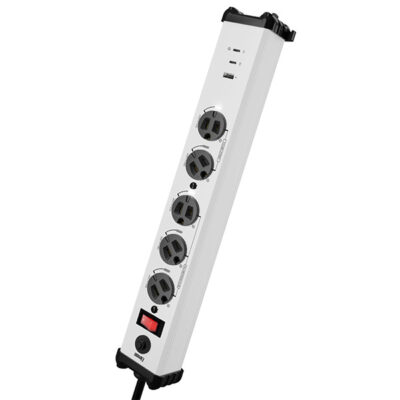 PD急速充電対応、回転スイッチ付きの2口延長タップ。 Type-C×2とType-A×1搭載、最大65W出力。台湾製、アルミ合金筐体。