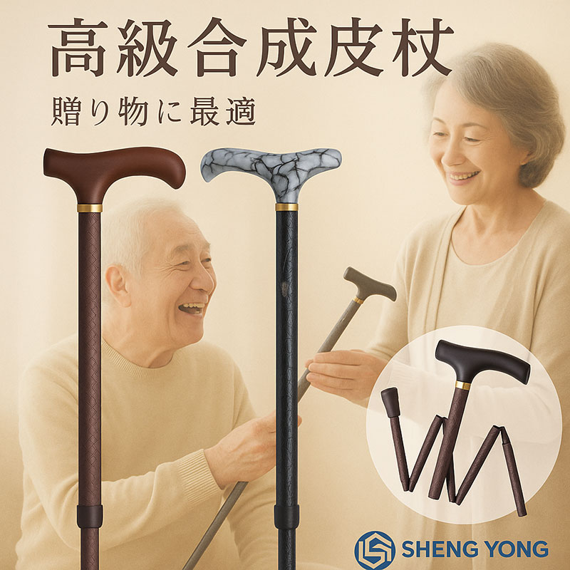 折りたたみ式タイプもご用意しており、収納や携帯にも便利です。旅行や外出時のサポートとしても最適な一本です。